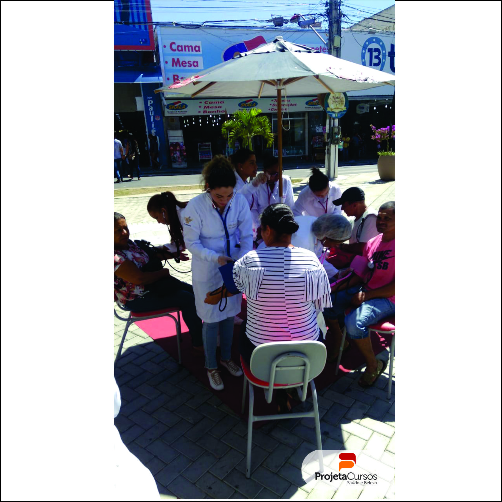 A Projeta Cursos ao longo do tempo, vem fortalecendo os seus diferenciais, estimulando os seus alunos nos aspectos teóricos e práticos, bem como, promovendo a sensibilização com as questões humanas e sociais. Neste sentido, os alunos PROJETA tiveram a oportunidade de praticar a enfermagem, consoante com a responsabilidade de facilitar o acesso a serviços básicos no âmbito da saúde e bem – estar. Entendemos que o conhecimento técnico ofertado com seriedade, na forma como o fazemos, em contato com o ser humano e suas relações interpessoais provoca amadurecimento e desperta profissionais de excelência.